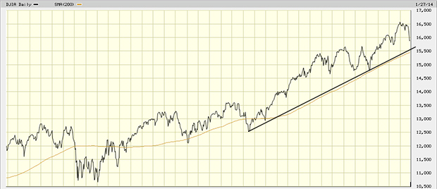 1. Dette er starten på en ganske standard korreksjon. Det betyr normalt 3 – 5 uker (fra toppen til bunnen) med hovedretning svakt ned og med en bunn 5 – 12 % fra toppen. 14 800 er for eksempel 11 % fra toppen. 15 700 er cirka 5 % fra toppen. Hvis så skjer kan vi igjen få starten på en stigende mellomlang trend før mars, noe som er gunstig for trendtradere.