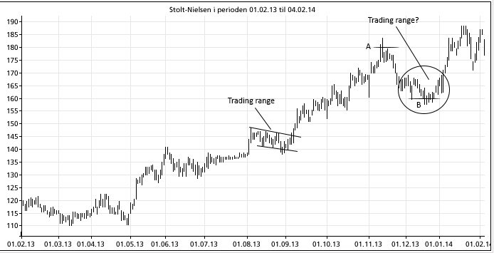 4. Nest siste signal er en «kortsiktig trading-range» den 30. desember 2013. Også dette signalet må sies å være diskuterbart: