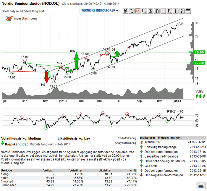 Analysen er «Dagens gratisanalyse» fra Investtechs hjemmesider. Nordic Semiconductor (NOD) frem til 4. februar 2014: