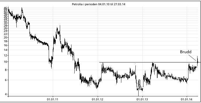 Denne gangen var det Myrseths anbefaling og glimrende timing som førte til bruddet. Petrolia lå ganske riktig i en lang, flat base bottom: