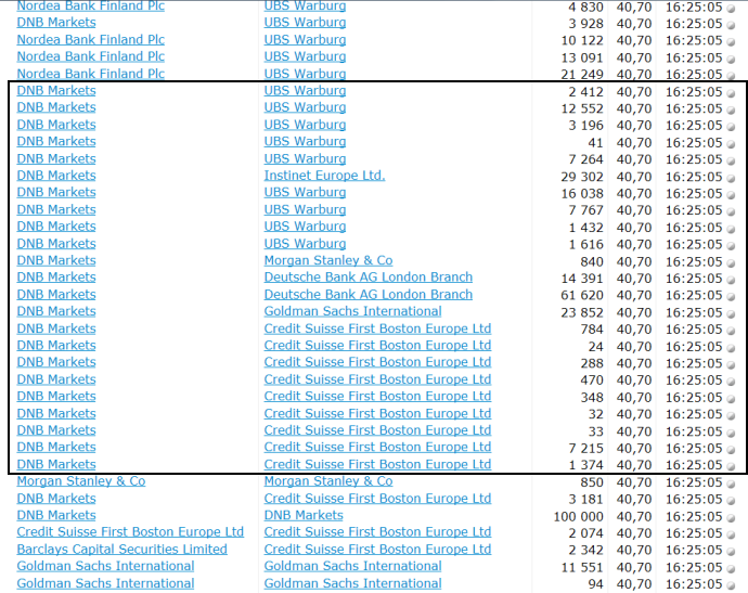 Kjøperne til venstre (DNB Markets), selgerne til høyre (utlendingene). Av dette kan vi altså lage følgende plausible forklaring: