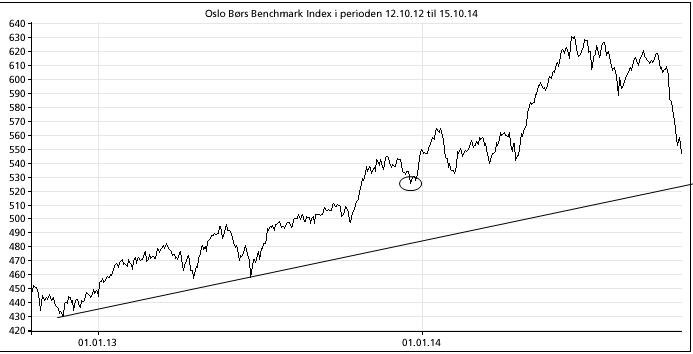 Hovedindeksen falt videre i dag til 547, etter å ha vært helt nede i 539,78. Dermed er den ned nesten 12 % de siste fire uker. Spørsmålet alle stiller seg nå er vel når dette fallet vil gi seg, og om dette bare er en korreksjon.